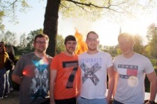 Ein paar Jungschützen schleppen gerade Tische und Stühle, bauen den Grill auf. Ob sie Zeit haben für ein paar Fragen? "Aber klar!" Ob Ostern in der Partygesellschaft von heute unter die Räder gekommen ist, ob der Schützen-Wahlspruch von „Glaube, Sitte, Heimat“ der nächsten Generation noch besonders wichtig sei, wollen wir wissen. Christoph Bökmann ist 30, Lehrer und im letzten Jahr Jungschütze. "Ich bin reingeboren in unsere Art, Feste zu feiern: Vater und Opa waren Schützen, auch Könige. Schützen und Kirche, feiern und glauben – das gehört für uns zusammen." Benni Wegener ist 26, Ingenieur für Biotechnologie und Zugführer beim Nachwuchs. Dass er evangelisch ist – es nimmt ihm niemand krumm, wozu auch? Um die ganz einfachen christlichen Werte von gutem Miteinander gehe es den Schützen, das erklären alle, auch Armin Jadasch und Matthias Lörcks, die sich jetzt mit an den Tisch gesetzt haben. Matthias Lörcks: "Wer Ostinghausen und seinen Menschen freundlich gesonnen ist, ist bei den Schützen willkommen." Benni Wegener: "Wir sind für alles offen – und wir sind damit auch die beste Anlaufstelle für alle im Ort, für alle neu Zugezogenen, wenn sie Gelegenheit für gute Gespräche und Kontakte suchen, wenn sie erst einmal reinkommen wollen ins Dorf..."